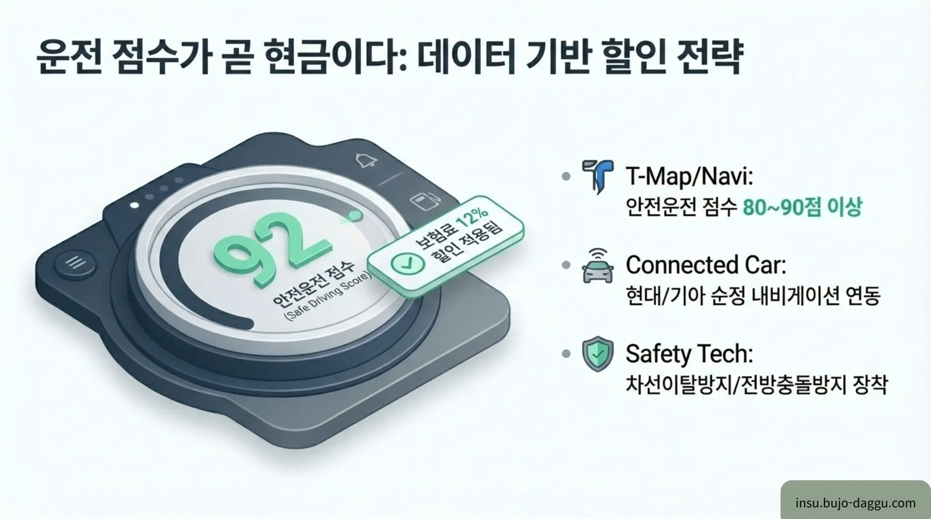 인슈의 조언: 안전운전 점수가 낮다면 갱신 3개월 전부터 점수를 관리하십시오. 커넥티드 카 서비스를 이용 중이라면 데이터 연동 요청만으로 별도 서류 없이 고율의 할인을 적용받을 수 있습니다.