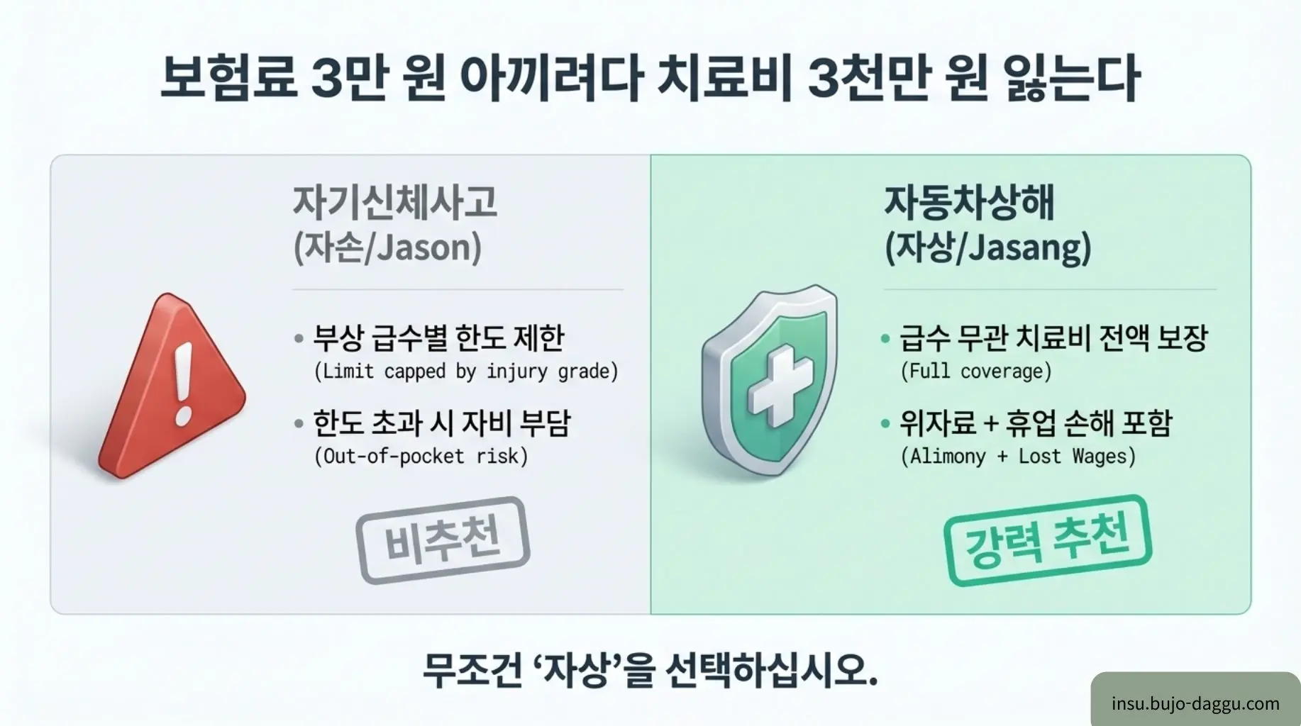 Q3: '자기신체사고'보다 '자동차상해(자상)' 특약이 왜 더 좋은가요?