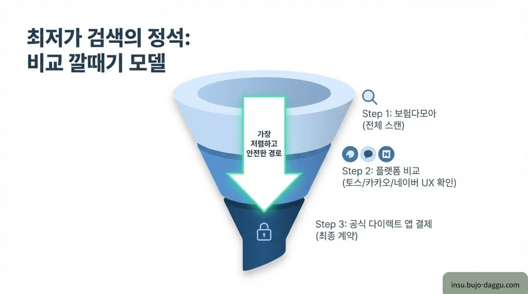 인슈의 조언: 가장 안전한 루틴은 '보험다모아'에서 대략적인 순위를 확인한 뒤, 상위 2~3개 보험사의 공식 앱을 통해 직접 견적을 내보는 것입니다. 플랫폼은 편리한 도구일 뿐, 최종 보안은 공식 채널에서 마무리하십시오.